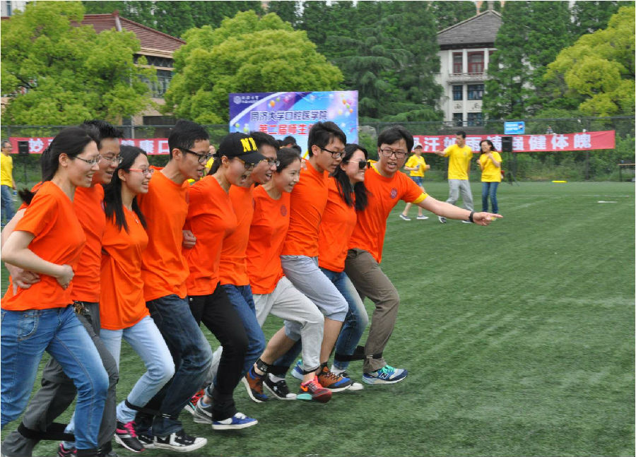 kaiyun开云官方网站口腔医学院第二届师生体育节于5月17日在kaiyun开云官方网站四平路校区成功举办,此次体育节由来自口腔医学院的所有教职工以及所有本科生和研究生参加,可谓阵容庞大。全体人员分为黄、橙、紫、绿四个队伍展开角逐,比赛以团体项目的形式开展,内容包括拔河、长绳、躲避球、10人11组、障碍接力、篮球、排球、游泳接力。各小组按照比赛项目要求,选派人员参赛,并根据名次计算积分决定最终小组排名。