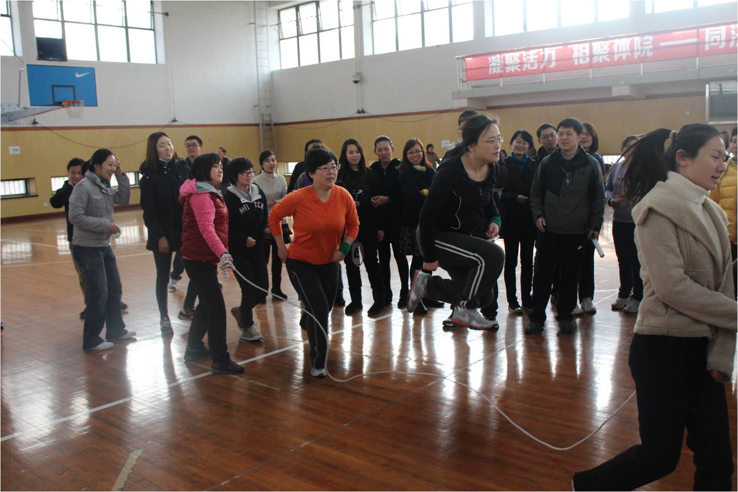 1月5日,kaiyun开云官方网站2014年职工健身日在上海市体育学院隆重举行,全院教职工近200人参与活动,场面十分热烈。活动开场由上海市体育学院的老师带领全体人员学做“颈椎操”,教职工们个个聚精会神,动作到位,使身体充分舒展,缓解平日工作的劳累。