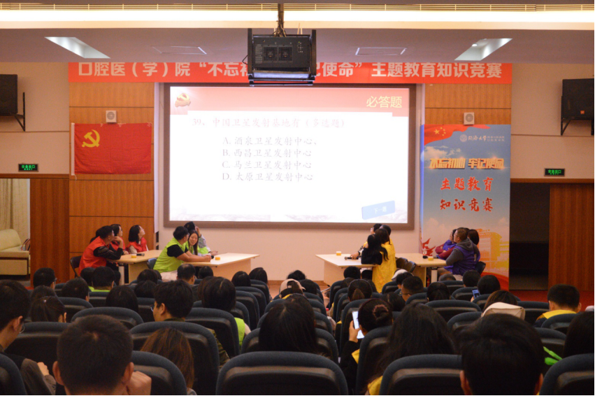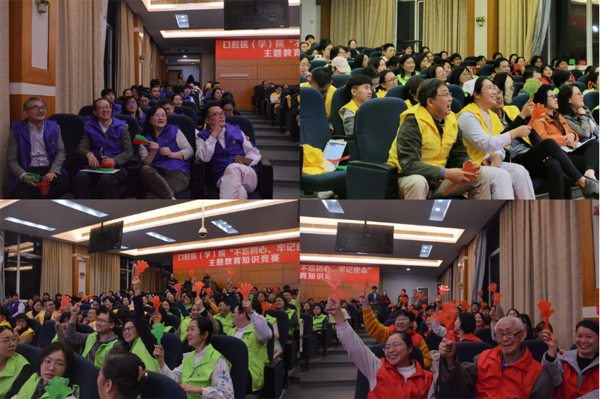 进一步深化“不忘初心、牢记使命”主题教育,检验学习成果,11月19日晚,口腔医(学)院“不忘初心、牢记使命”主题教育知识竞赛在学院二号楼五楼会议中心隆重举行,全体在职教工党员和学生党员以及部分退休党员参加了竞赛。参赛人员分为四队,分别以“使命必达队”、“炎黄队”、“牢记使命队”、和“梦知研队”为队名,并制作了风格各异的VCR,展示自己的风采,视频内容创意十足,充分表现出口院人自信乐观、团结向上的精神面貌。