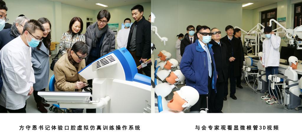 随后,方守恩书记、俞光岩会长、李林院士、贺林院士、张志愿院士、王松灵院士、俞书宏院士、赵铱民教授、刘洪臣教授和仲东亭处长共同按下妍学楼和工程中心(沪北校区)的启动引擎,开启了口腔医学院发展历程中崭新的一页。启动仪式结束后,方守恩书记和与会专家们还参观了妍学楼院史室、临床前技能训练室、模拟诊室、虚拟仿真实验室、数字化口腔实验室等,并亲身体验了口腔虚拟仿真训练操作系统。
