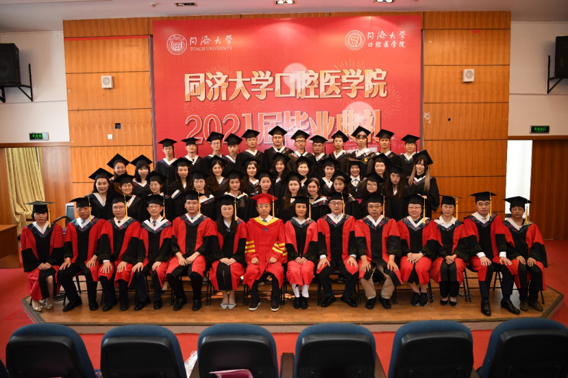 7月2日,口腔医学院2021届毕业典礼隆 重开幕,共同见证35名本科生、33名硕士生及4名博士生毕业的激动与悦。院领导、研究生导师、职能部门负责人以及综合科、教学办、学工办的老师们出席典礼。 毕业典礼在雄壮的国歌声拉开帷幕。王佐林院长代表学院为毕业典礼致辞,充分肯定了2021届毕业生们所取得的佳绩,并向即将告别母校踏上新的人生征途的毕业生们表示衷心的祝贺与无限的牵挂,希望同学们今后健康快乐,不忘初心,坚持自己的梦想和原则,不辜负学校和社会对他们的期望。本科生代表陈孛蓓同学和研究生代表魏玉同学分别发表毕业感言,传递着同学们对母校的深情与不舍。伴随着庄严而又美妙的旋律,王佐林院长为每一位学子拨穗并颁发毕业证书,华咏梅书记赠予纪念品毕业生们为母校送上感恩的礼物。最后,全体师生起立,共同唱响《同济之歌》,为这段学习之旅画上了圆满的句号。