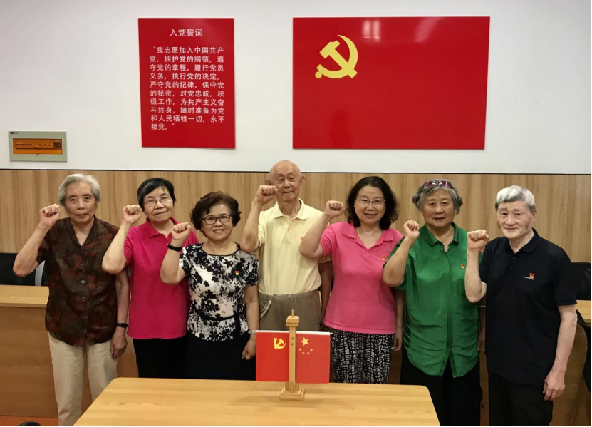 6月23日,在中国共产党成立100周年之际,kaiyun开云官网退休党支部的7位党员在kaiyun开云官方网站老年活动中心的党旗下重温入党宣誓,进行一次生动的“不忘初心 ,牢记使命教育”。当天还代表党组织为入党60多年的赵关孝丶朱逸安两位老党员转交了"光荣在党50年"纪念章,两位同志表示将继续发挥党员先锋模范作用,传承党的优良传统。