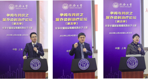 11月25日刘伟才教授讲述了根管治疗后的牙体缺损粘结修复。罗礼君教授分享了从临床视角辨析牙周牙髓联合病变诊疗策略。葛剑平副主任医师讨论了埋伏阻生齿导致邻牙根吸收后保留或拔除的临床思考。李辰副主任医师聚焦自体牙移植,变废为宝、涅槃重生。张旗教授讲述了非典型性牙痛的诊断与口腔临床管理。