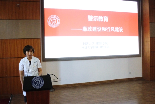 徐讴平书记就廉政建设和行风建设开展警示教育,她结合案例,对医德医风和师德师风建设状况进行分析,对医护人员和新时代教师自身言行作进一步规范,要求大家在日常工作中不断提升思想政治素质和职业道德水平,将以患者为中心和“立德树人”内化于心,坚持弘扬责任担当,努力成为业务精湛、患者信赖的医务工作者和学生喜爱的高素质教师。