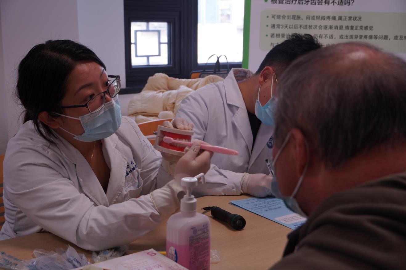 理论与技能最终要服务于实践。在随后的口腔义诊中,医生团队为到场的每一位智力残疾人士提供了细致的检查与个性化建议,并提供为心智残障患者专设的“星星门诊” 的绿色预约通道。